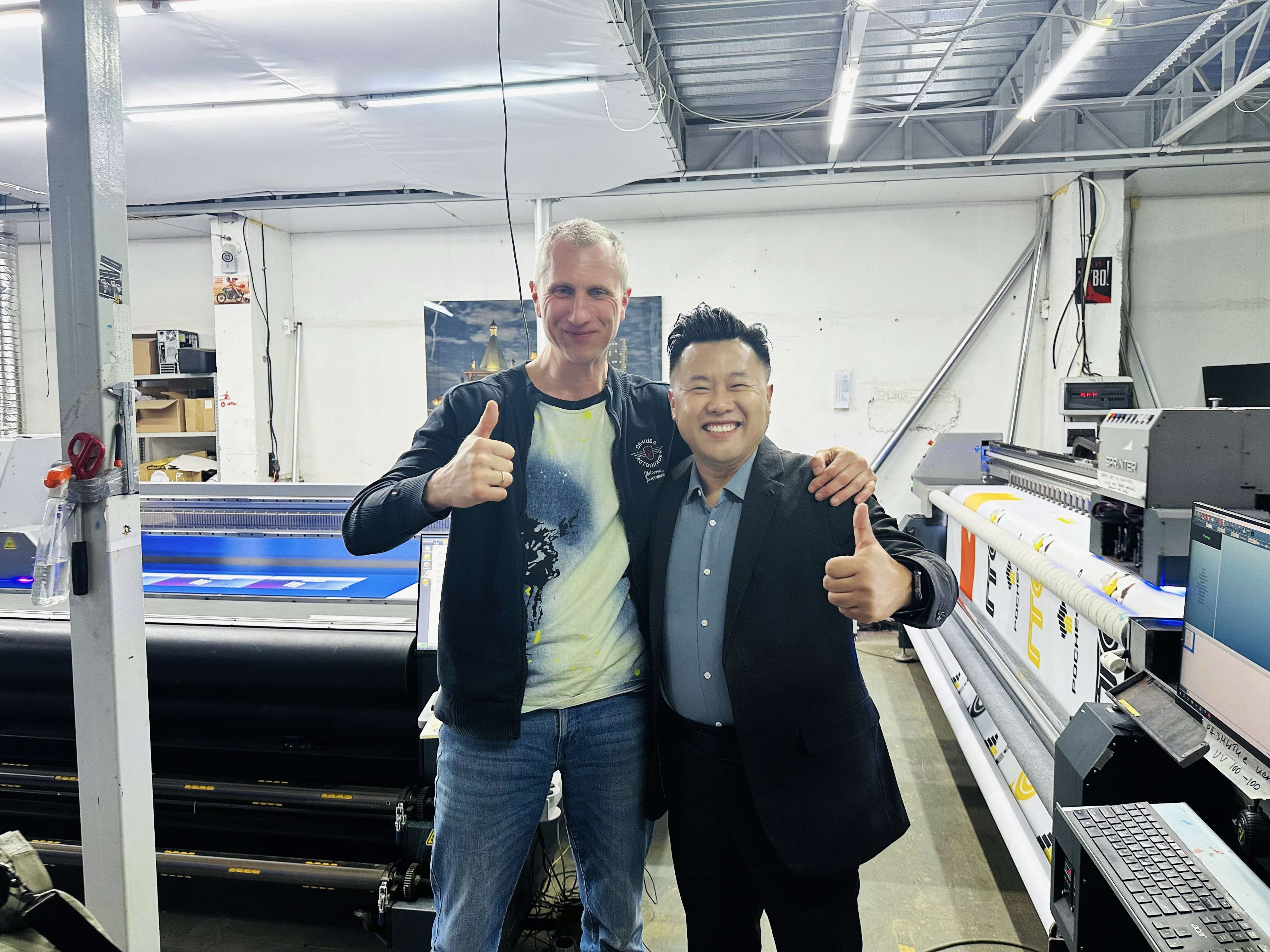 The VIP customer has purchased two machines from us, including the TC-FR3221 (UV Flatbed & Roll Printer) and Power 4s (UV Roll to Roll Printer). He is satisfied with the overall performance of our printers, which fully meet his daily production requirements. He also spoke positively of our technical staff for their professional expertise and thoughtful on-site service, delivering a smooth and reassuring cooperation experience.